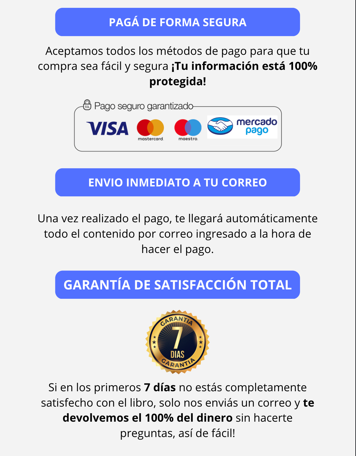 Recibirás el acceso al ebook de forma inmediata una vez confirmada la compra. Te llegará directamente al correo electrónico que hayas ingresado durante el proceso de pago